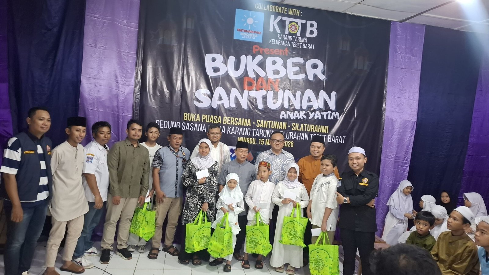 Acara ini menghadirkan anak-anak yatim dari lingkungan sekitar serta melibatkan warga, pemuda setempat, dan dihadiri Lurah Tebet Barat, Andi Nurcahya. Dalam suasana hangat penuh kebersamaan, santunan diberikan sebagai bentuk perhatian sekaligus harapan agar anak-anak tetap memiliki ruang untuk bermimpi dan tumbuh dengan optimisme.