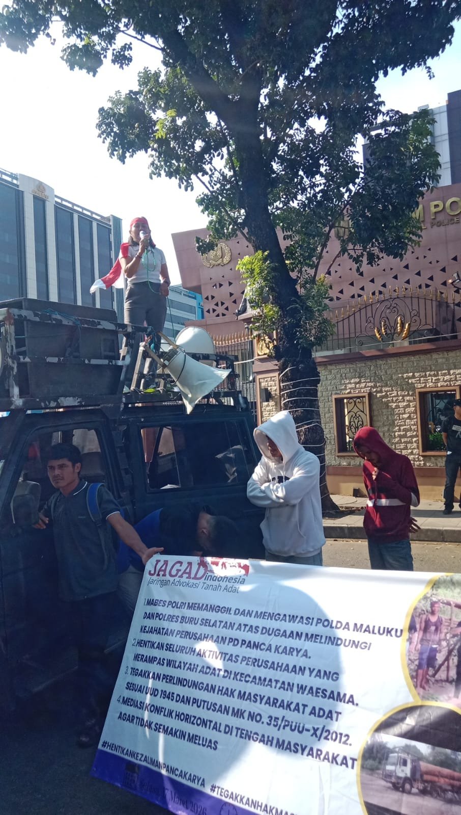 Koordinator JAGAD, Feronika Latubual/Nurlatu, secara resmi meminta Mabes Polri untuk mengevaluasi kinerja Polda Maluku dan Polres Buru Selatan. Permintaan ini didasari atas penilaian bahwa aparat di daerah belum melakukan langkah preventif maupun penegakan hukum yang memadai dalam menangani konflik antara masyarakat adat dan pihak perusahaan.